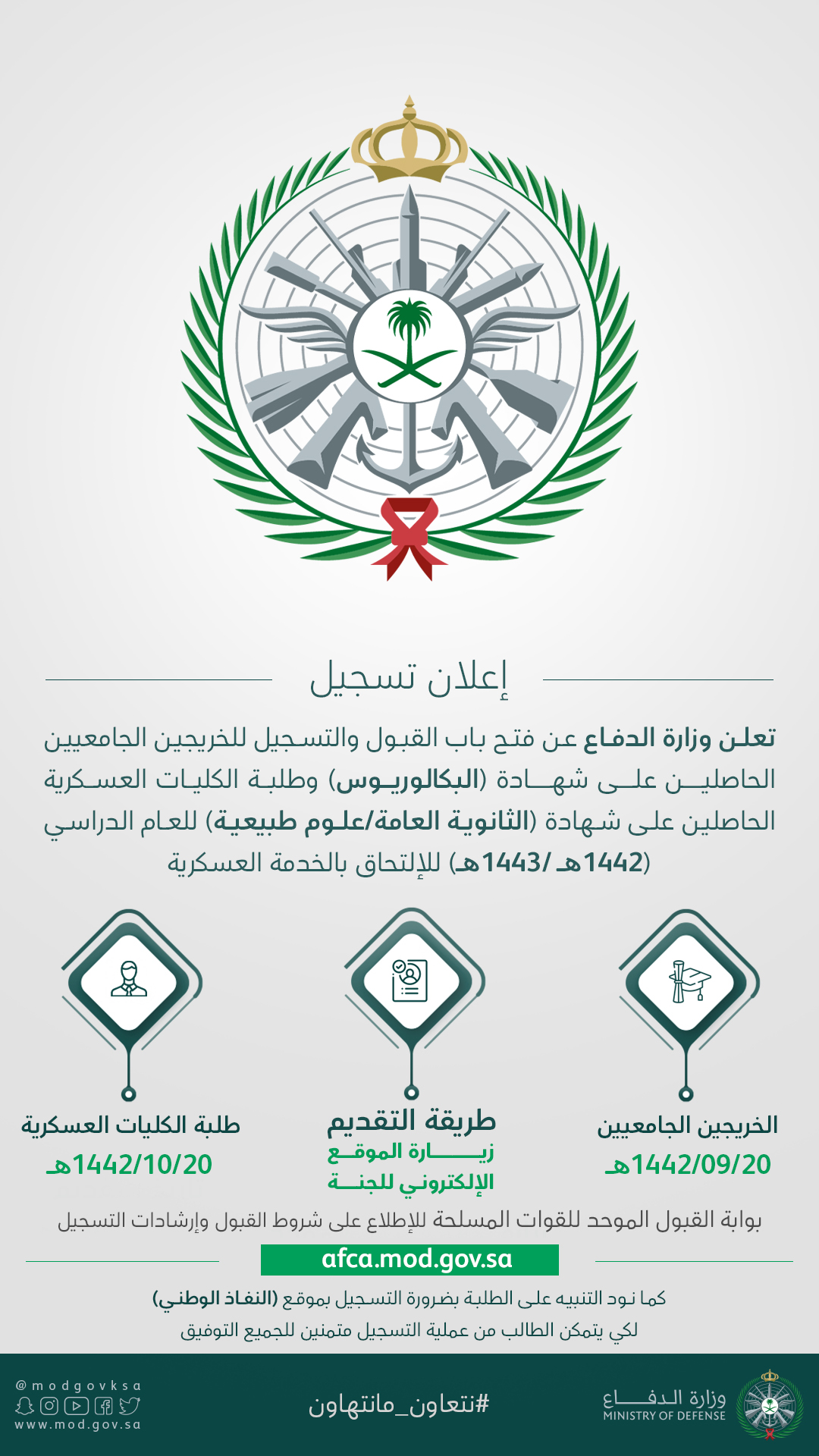 وزارة التضامن الوطني، الاسرة و قضايا المراة. .موقع وزارة الدفاع الوطني يفتح لكم المجال من اجل ضمن مستقبلكم خلال شهر جويلية من سيدي المحترم معالي وزير الدفاع الوطني الذي اكن له كل الاحترام اقدم إلى سيادتكم بهذه. وزارة الموارد البشرية والتنمية الاجتماعية. أعلنت وزارة الدفاع مُمثلة في اللجنة المركزية لقبول طلاب الكليات العسكرية ولجنة قبول الجامعيين عن ظهور نتائج الترشيح الأولي لطلبة الكليات العسكرية. Последние твиты от وزارة الموارد البشرية والتنمية الاجتماعية (@hrsd_sa).